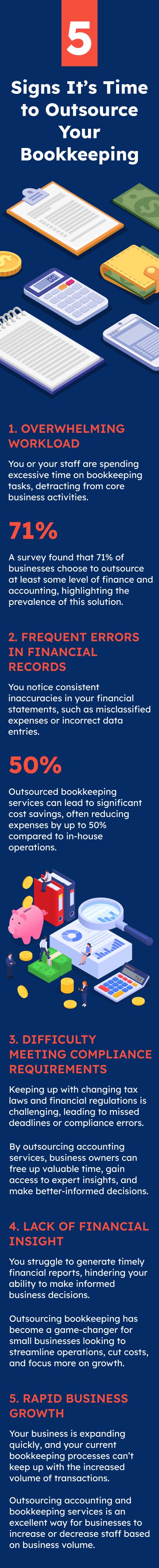 As businesses expand, financial transactions become more complex, leading to increased time spent on bookkeeping. Outsourcing can alleviate this burden, allowing you to focus on strategic initiatives. A survey found that 71% of businesses choose to outsource at least some level of finance and accounting, highlighting the prevalence of this solution¹.