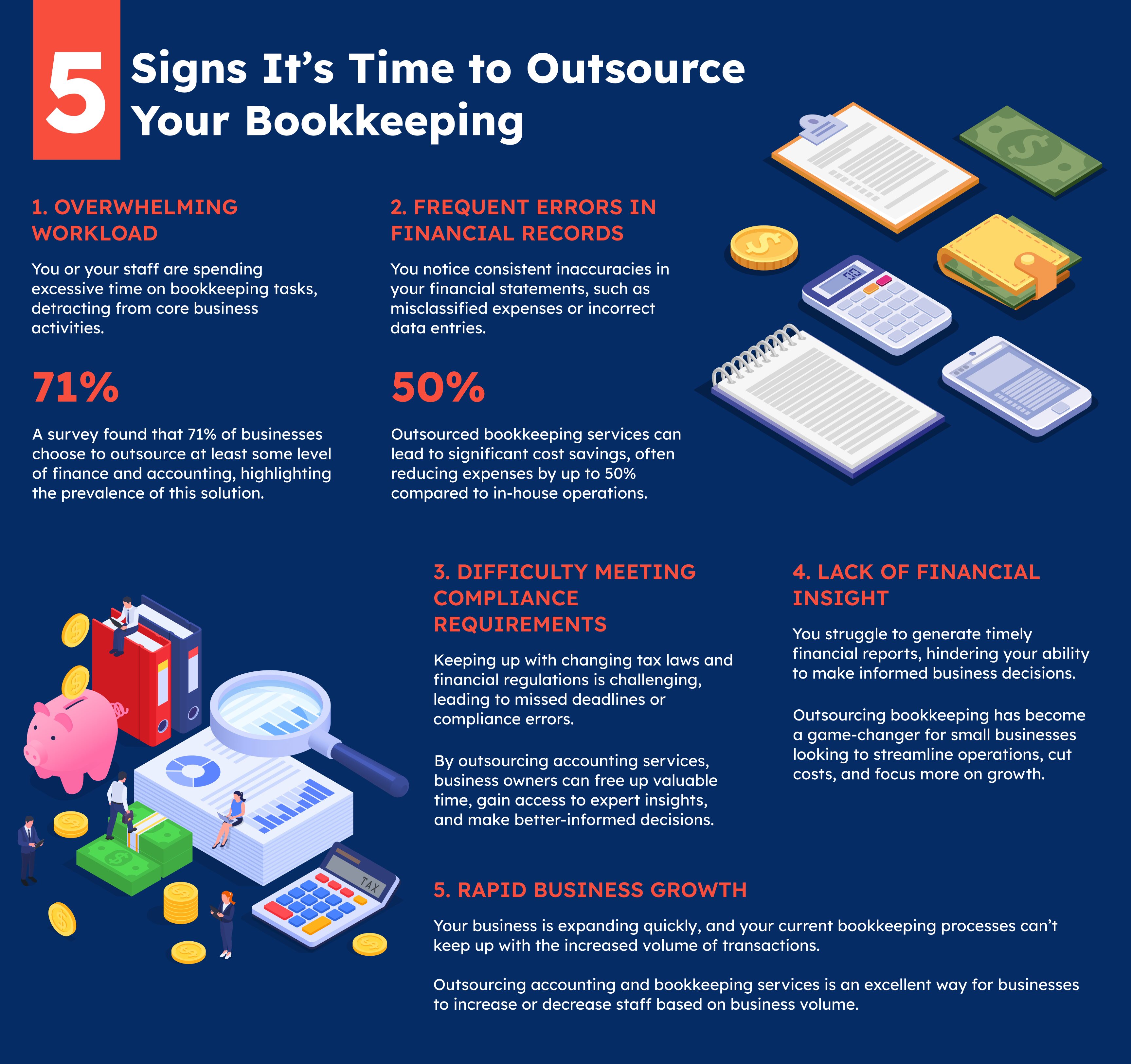 Staying compliant with evolving regulations is crucial to avoid penalties. Outsourcing ensures that experts are handling your bookkeeping, keeping your business aligned with current laws. By outsourcing accounting services, business owners can free up valuable time, gain access to expert insights, and make better-informed decisions³.