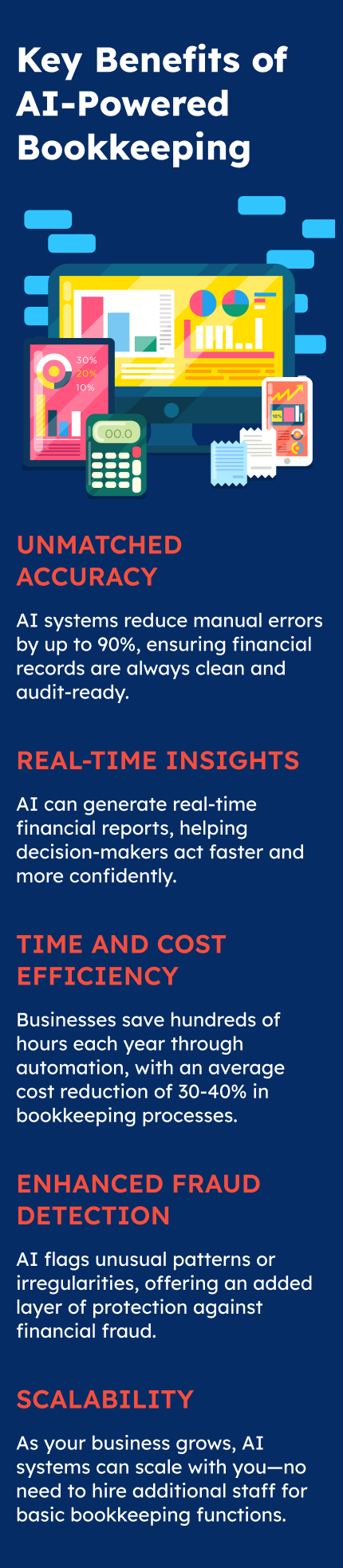 As your business grows, AI systems can scale with you—no need to hire additional staff for basic bookkeeping functions.