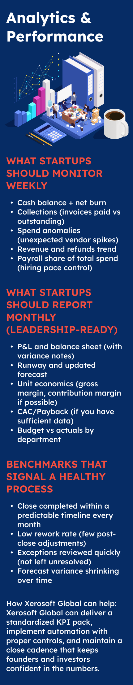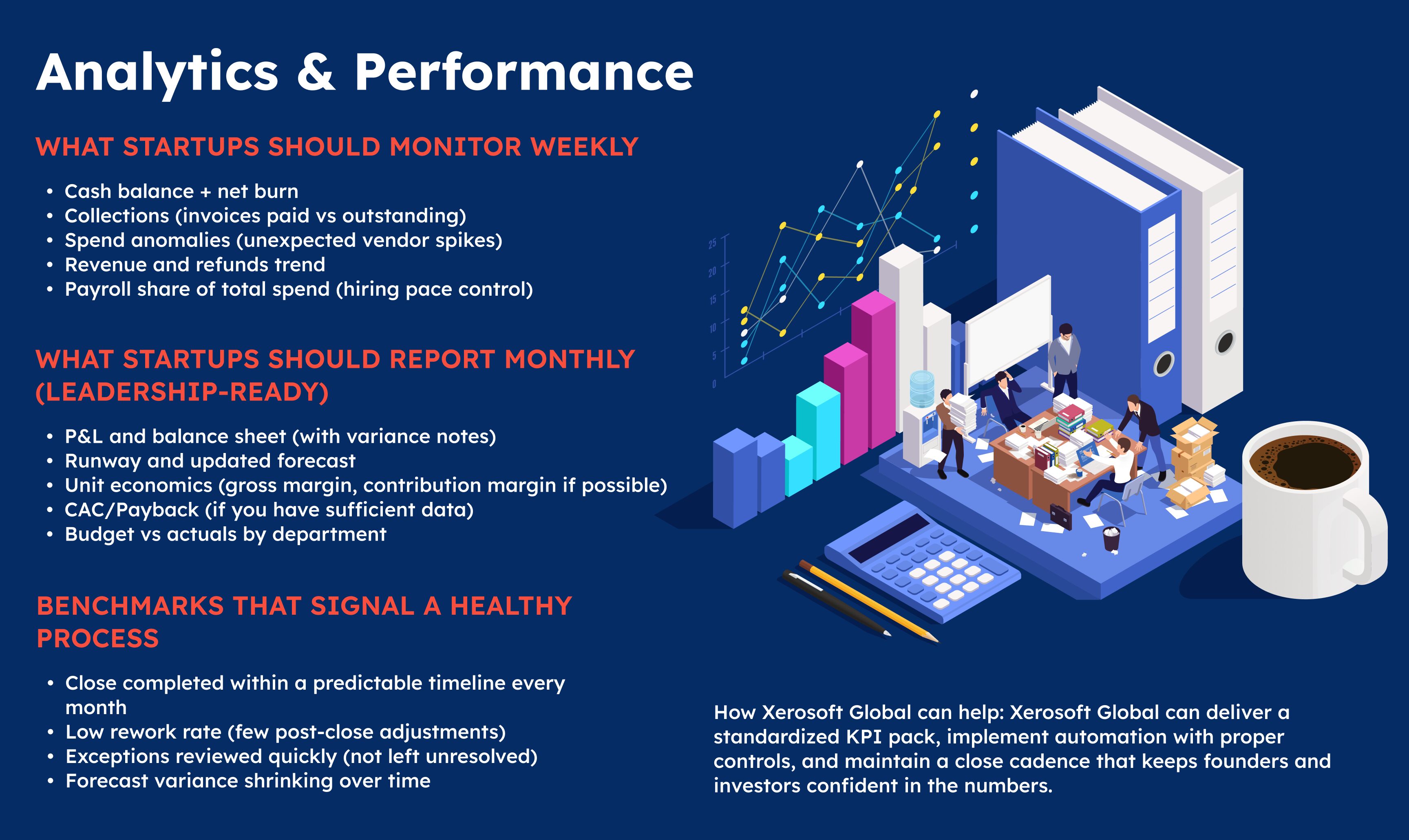Where Xerosoft Global fits: Xerosoft Global can help startups set up scalable bookkeeping, automate routine processing, and implement controls that keep reporting accurate as the business grows.