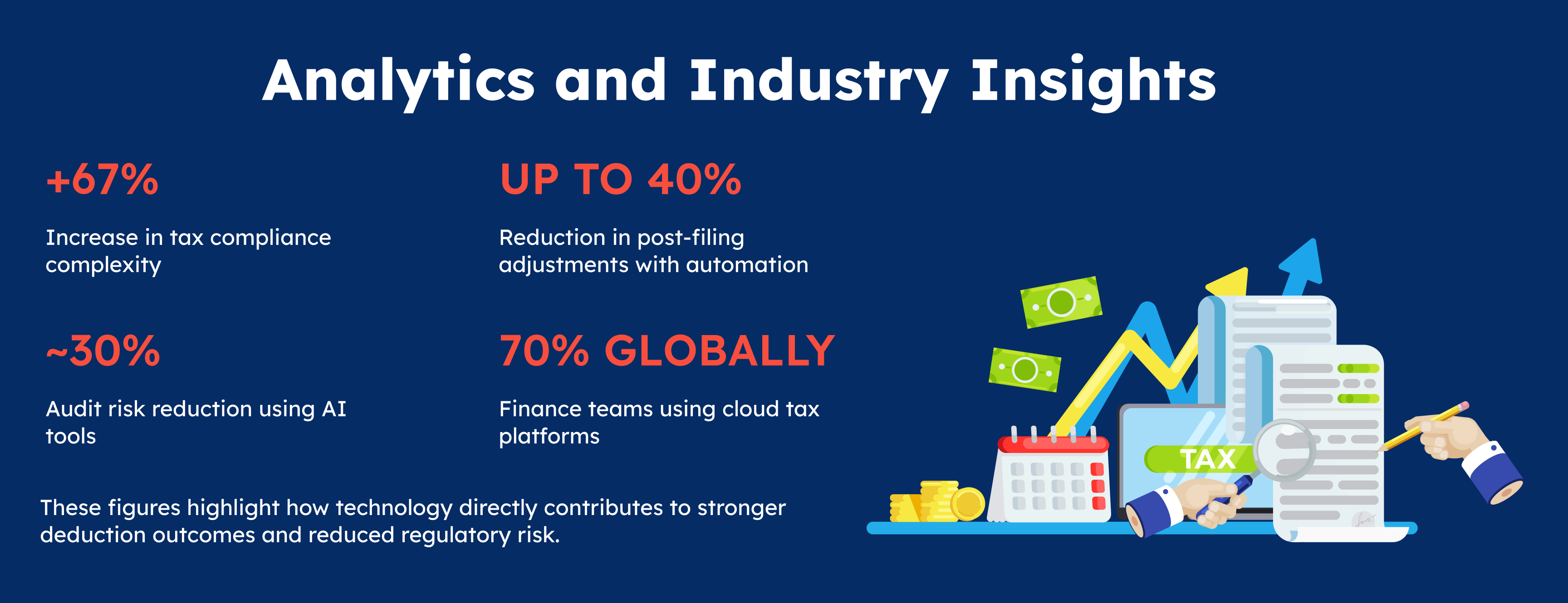 According to EY, organizations using AI in tax functions reduced audit exposure by 30% while improving deduction accuracy.