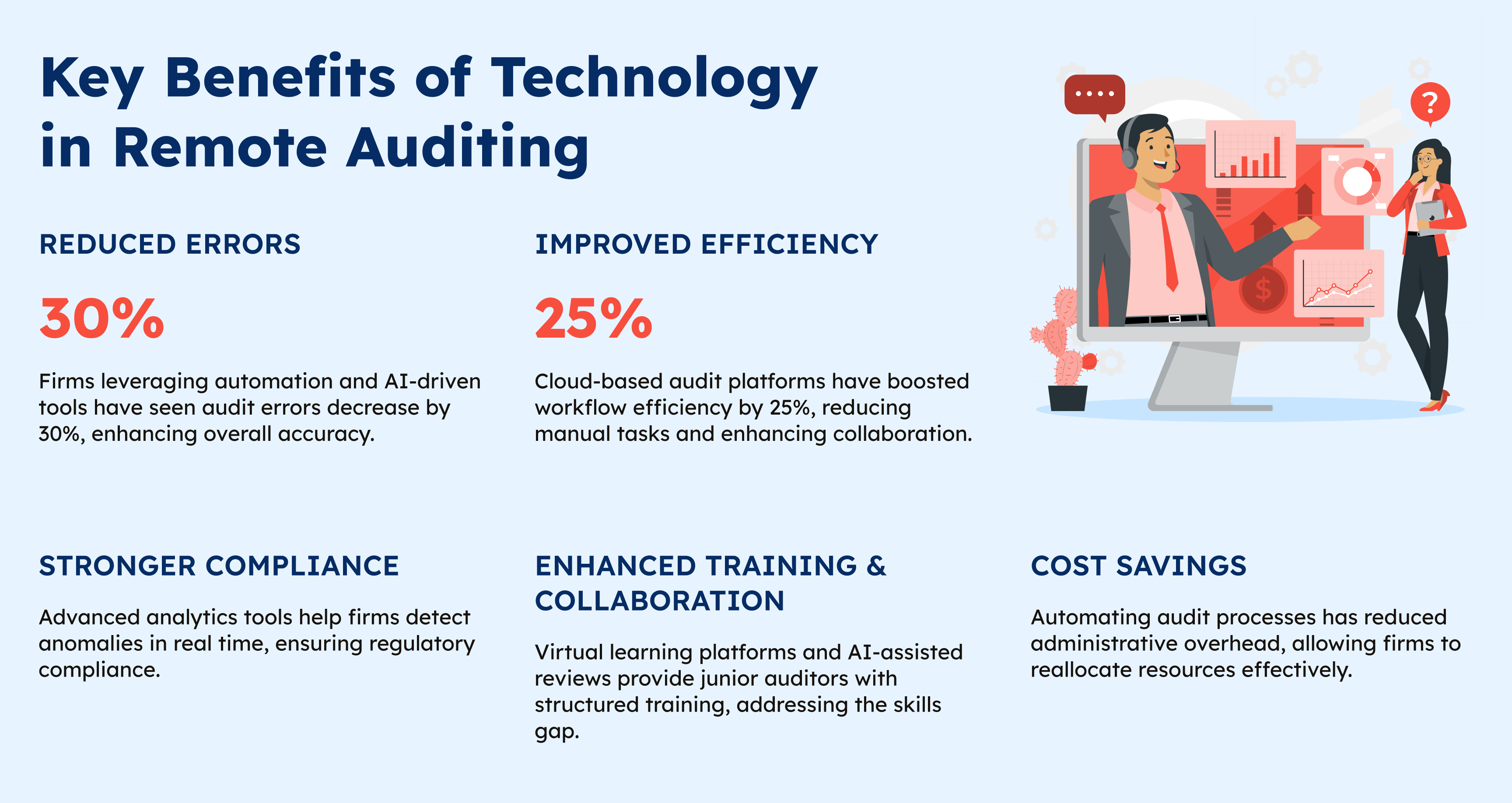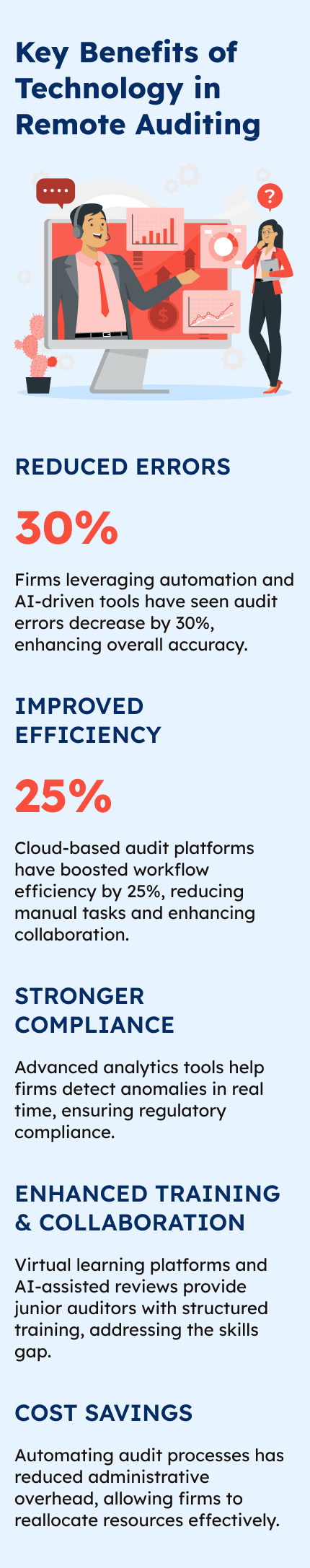 Virtual learning platforms and AI-assisted reviews provide junior auditors with structured training, addressing the skills gap.