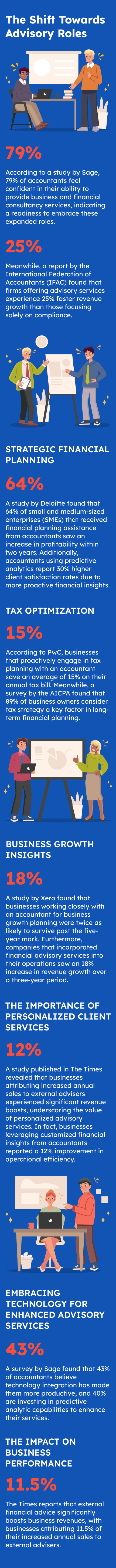 According to a study by Sage, 79% of accountants feel confident in their ability to provide business and financial consultancy services, indicating a readiness to embrace these expanded roles. Meanwhile, a report by the International Federation of Accountants (IFAC) found that firms offering advisory services experience 25% faster revenue growth than those focusing solely on compliance.