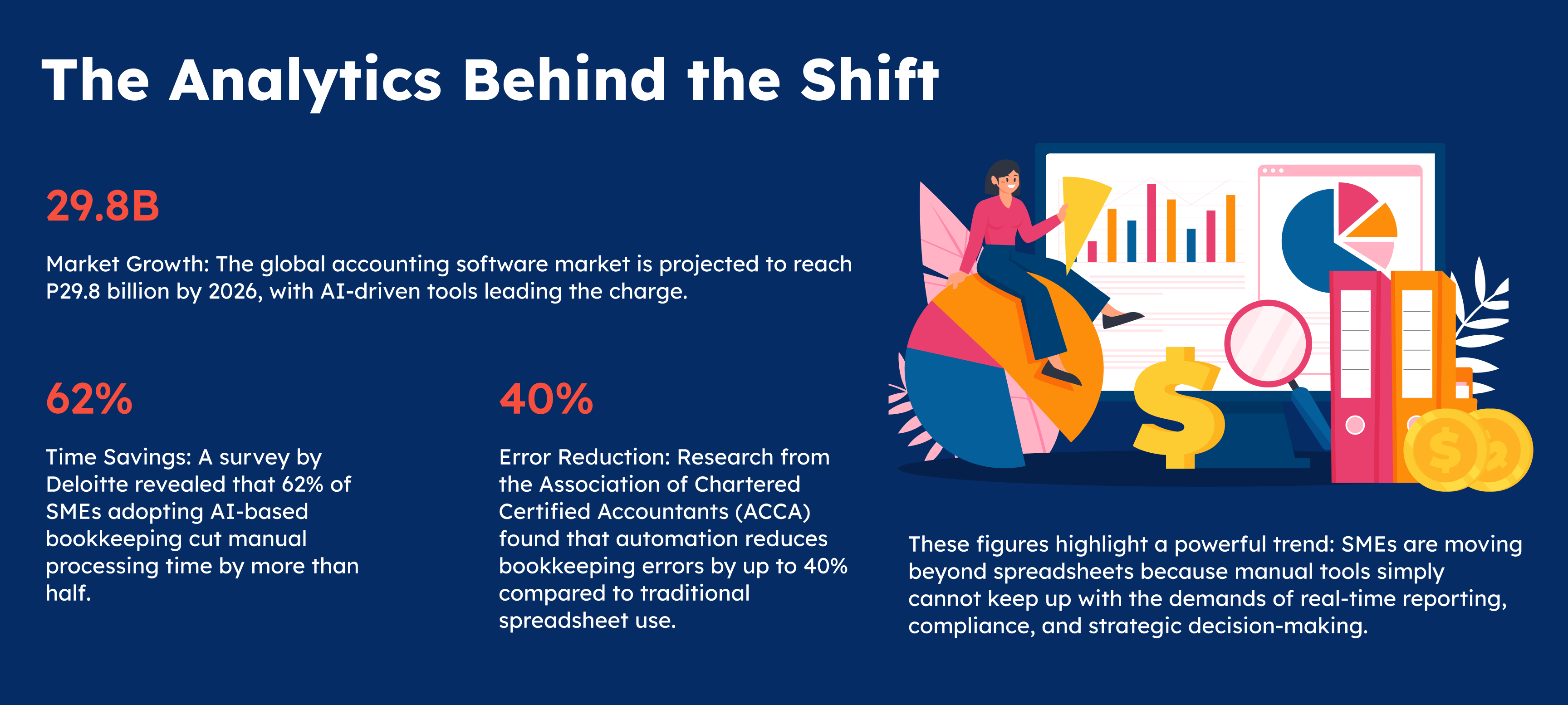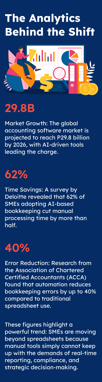 For decades, bookkeeping for small and medium-sized enterprises (SMEs) revolved around manual spreadsheets. While tools like Excel revolutionized recordkeeping in their time, today’s digital-first business environment demands faster, more accurate, and more insightful financial management. The shift toward automation and artificial intelligence (AI) is transforming how SMEs handle bookkeeping, empowering them with real-time insights and reducing administrative burdens.