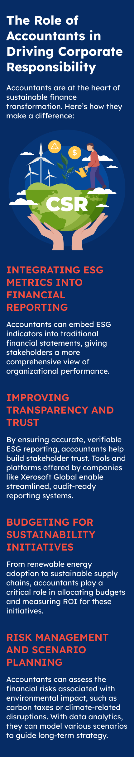 In today’s increasingly conscious business environment, companies are expected to do more than just turn a profit—they must also demonstrate their commitment to environmental, social, and governance (ESG) values. This is where sustainable finance comes in, and accountants are uniquely positioned to play a pivotal role. As firms like Xerosoft Global continue to help businesses transform their financial operations, integrating sustainability into financial strategy has become not just beneficial, but essential.