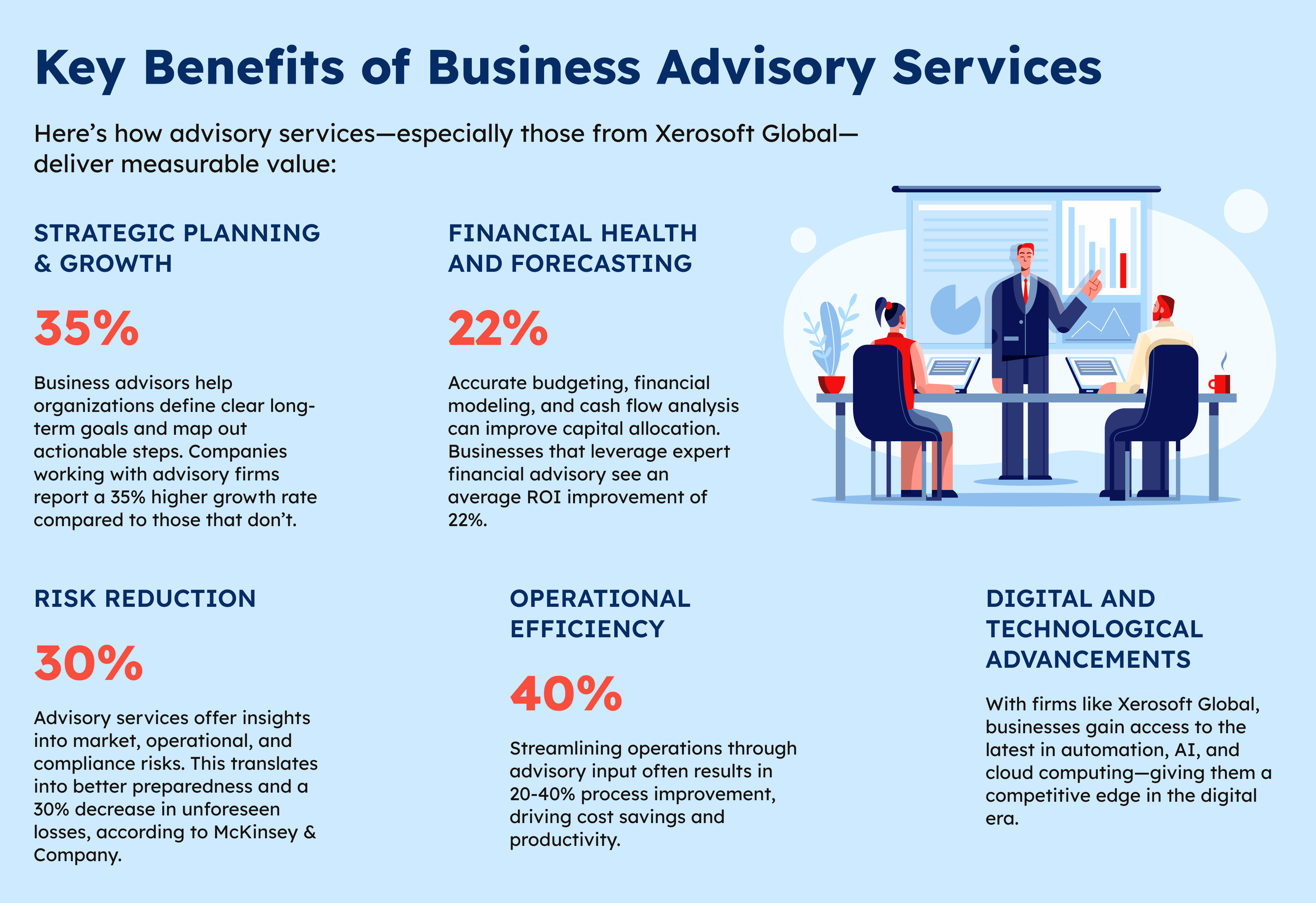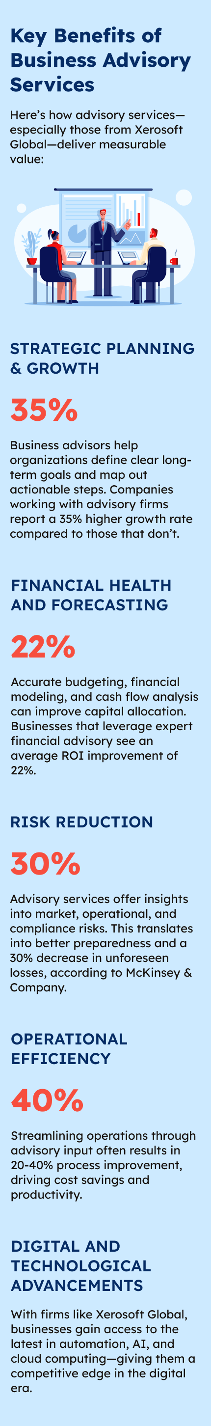 Here’s how advisory services—especially those from Xerosoft Global—deliver measurable value: