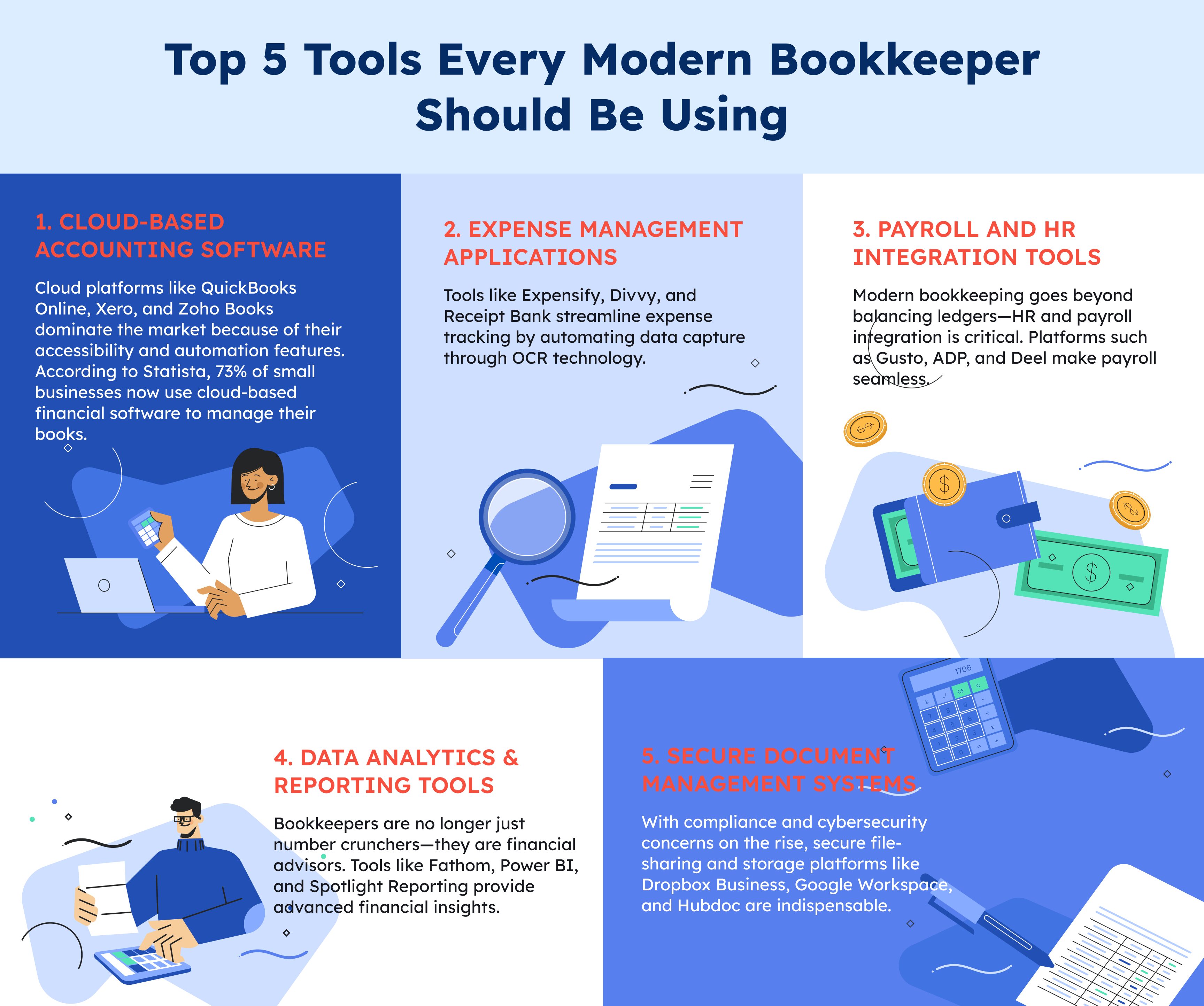 The role of the bookkeeper is transforming rapidly. By adopting modern tools—cloud accounting platforms, expense management apps, payroll solutions, analytics dashboards, and secure document systems—bookkeepers not only improve efficiency but also provide more value to clients.