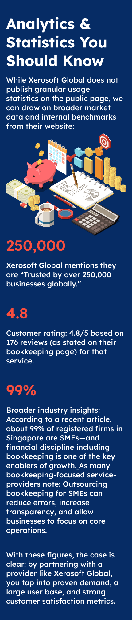 In a world where businesses are expected to move fast, stay compliant and scale efficiently, bookkeeping must evolve from a purely administrative task to a strategic enabler. By choosing a modern solution such as Xerosoft Global’s bookkeeping service, companies gain the automation, expert support, transparency and cloud convenience required to stay ahead. The analytics show a strong demand and high customer satisfaction, making this a compelling choice for busy businesses that want reliable books, actionable insights and the freedom to focus on what matters.