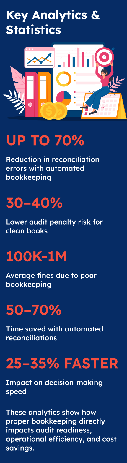 - Companies with structured bookkeeping are 30–40% less likely to face audit penalties.